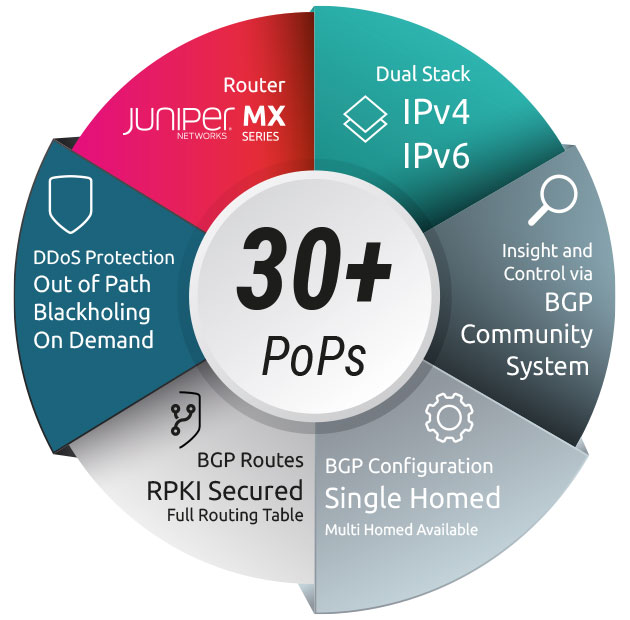 We offer a global routing table of which more than 80% are directly connected ensuring minimal hops to every destination.